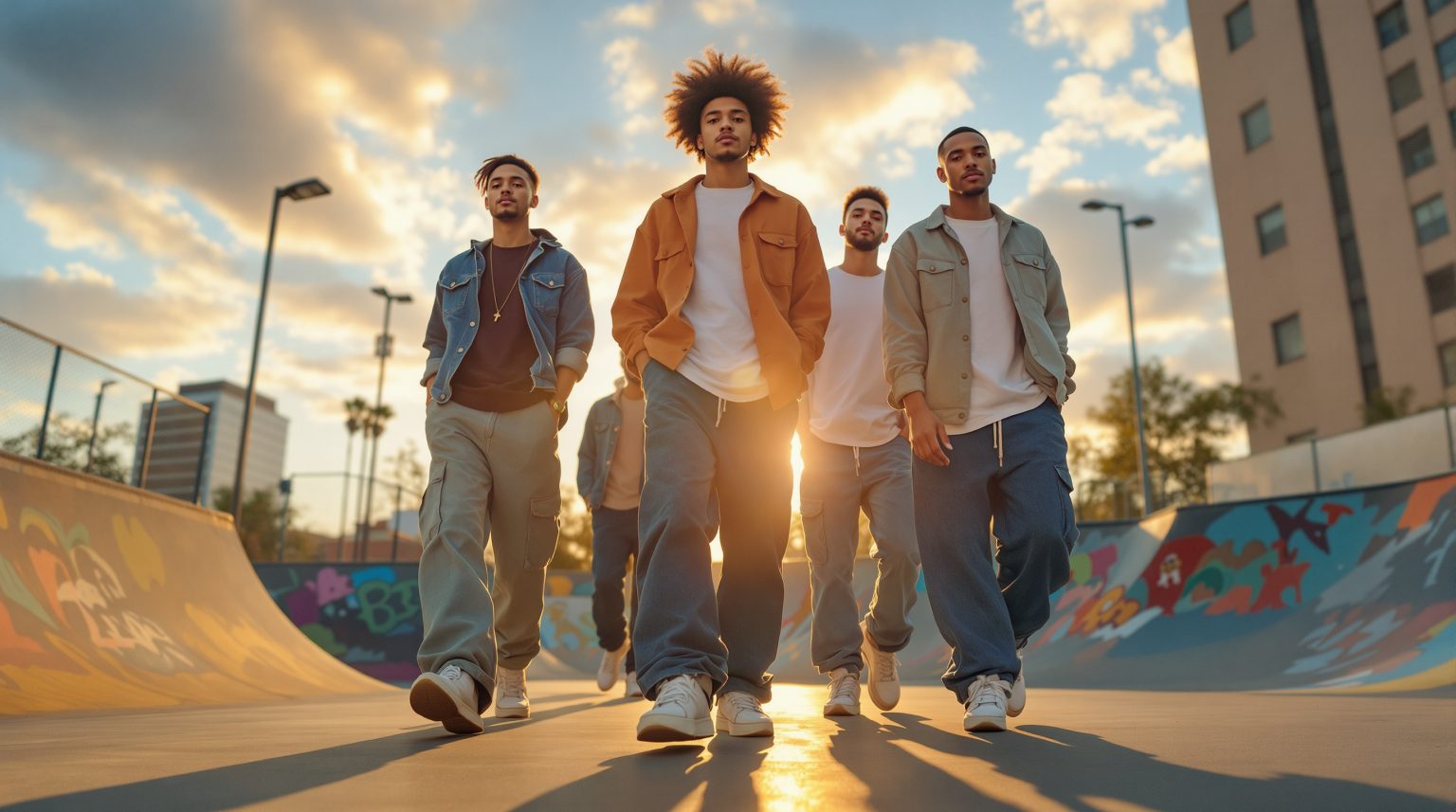 Le skateboard a joué un rôle majeur dans la diffusion et la transformation des pantalons streetwear. Les skateurs privilégient des modèles amples, souvent baggy ou oversize, qui facilitent les mouvements et garantissent une grande aisance lors des figures. Ce style a influencé la mode urbaine en général, donnant naissance à des pantalons larges, parfois inspirés des jeans vintage ou des coupes Y2K. L’esthétique skate mêle confort et authenticité, renforcée par des marques emblématiques qui valorisent l’esprit « hustle » et la persévérance. Le pantalon streetwear devient alors un symbole d’identité pour les jeunes générations urbaines, combinant fonctionnalité et style audacieux.